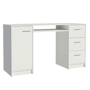 Cor: Branco | Garantia: 3 meses contra defeitos de fabricação | Dimensões - Altura: 77 cm | Dimensões - Largura: 136 cm | Dimensões - Profundidade: 45 cm | Produto: Mesa para Escritório | Marca: Madesa | Peso aproximado: 30 KG | Tonalidade: Branco | Material: MDP | RBN: Móveis/Móveis para Escritório em Casa/Mesas, Escrivaninhas e Estações de Trabalho | Tipo: Sem rodinhas | Cômodo Indicado: Home Office | Instruções/Cuidados: Utilize um pano limpo, levemente umedecido e seque em seguida a superfície. Não usar produtos químicos ou abrasivos para a limpeza. Recomendamos polir seu móvel com lustra-móveis duas a três vezes por ano. | Conteúdo da embalagem: 1 Escrivaninha | Produto precisa de Montagem?: Sim, sugerimos a contratação do nosso serviço de montagem (para os CEPs em que o serviço está disponível) ou de algum experiente de sua preferência | Altura do Produto com Embalagem (cm): | Largura Produto Com Embalagem (cm): | Comprimento Produto Com Embalagem (cm): 147 | Peso Produto Com Embalagem (Kg): | Nome do Simples no Fornecedor: Escrivaninha Madesa Alaska 3 Gavetas 1 Porta | Descrição do Tamanho: 77 cm x 136 cm x 45 cm | Tempo de do Fornecedor (dias): 1 | | Estado de Origem: RS | Material para Filtro: MDP | Fabricante: Madesa | Cor: Branco