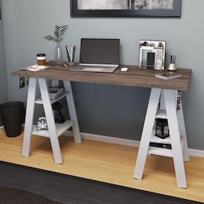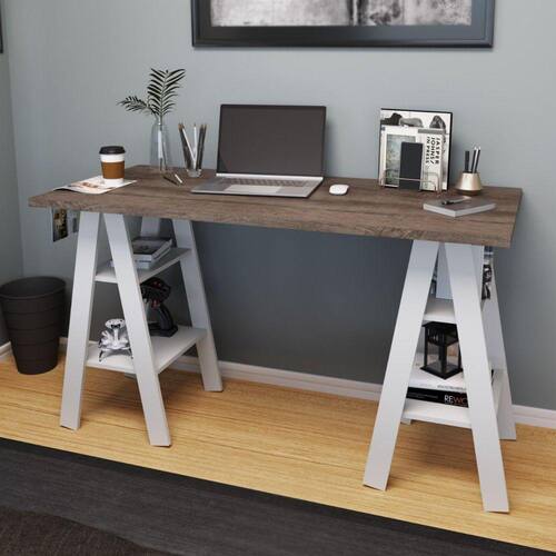 Mesa Cavalete com 4 Prateleiras, MB 1034, da Movelbento tem Um Design Moderno e Leve. Os Pés Semelhantes a Cavaletes Ampliam o Ambiente, 4 Prateleiras para Guardar Diferentes Tipos de Objetos. Seu Tampo Amplo e robusto de 25mm. Um Jeito Despojado de Trazer a Organização e Funcionalidade Ao Ambiente de Trabalho e Estudo, no Mais Alto Estilo. Produto Montado: Sim Acabamento da Prateleira: Pintura UV Ambiente Principal: Escritório codigo_ean: 7909903345412 Complexidade da Montagem: Baixa: pode ser montado por uma pessoa sozinha Cor: Rústico/Branco Cor do Produto: Rústico/Branco Cor Interna: Branco Dobrável: Não Escala de Brilho: Fosco Escala de Brilho da Prateleira: Fosco Espessura do Tampo: 25 mm Formato: Retangular Itens Inclusos: 1 Escrivaninha, Kit Ferragens e Manual de Montagem Manual de Montagem e Instalação: https://product-hub-prd.madeiramadeira.com.br/856741/documents/80408eb0-27cd-40d3-ab5f-6e279ba1aa001386945mb1034.pdf Material da Estrutura: MDP Material da Prateleira: MDP Material do Tampo: MDP Material Principal: MDP Montagem Flex: Não Necessita Montagem: Sim Origem do Produto: Nacional Pés com Regulagem de Altura: Não Peso: 22,3 kg Peso Máximo por Prateleira: 5 kg Possui Passa Cabos: Não Possui Porta Objetos: Não Possui Portas: Não Possui Suporte para Teclado: Não Possui Vidro: Não Recomendações de Uso, Manutenção e Limpeza: Antes de limpar recomenda-se que seja retirada toda a poeira com um espanador ou flanela seca para evitar riscos na superfície, após utilize um pano umido em água, macio e limpo. Sapatas Niveladoras: Sim Sistema de Montagem: PARAFUSOS Suporta Até (kg): 25 kg