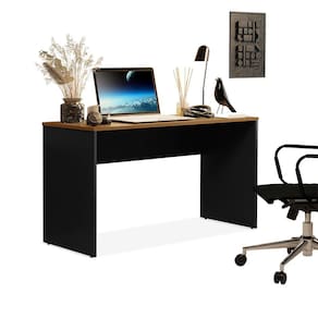 Escrivaninha madeira Madri Deixa mais organizado e pronto para acomodar eletrônicos, materiais de papelaria, livros e o que mais você precisar ter por perto na hora do home office ou sessão de estudos: a Escrivaninha Madeira Madri tem tudo. Além do tampo amplo para apoiar um notebook, porta-trecos e luminária.