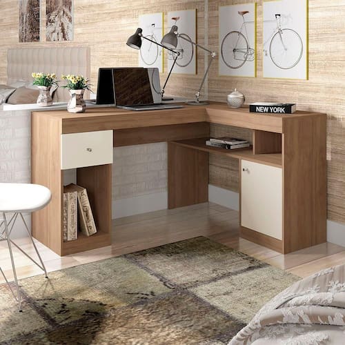 Escrivaninha Mesa Computador De Canto Office 137cm Suzan C01 - D'rossi Cor Bege Amarelado/off White Se você procura uma solução inteligente para otimizar seu ambiente de trabalho ou estudo, a Escrivaninha Mesa Computador de Canto Office 137cm Suzan é a escolha certa. Produzida em MDP de 15 mm e HDF de 2,5 mm, ela alia resistência, durabilidade e um acabamento sofisticado em pintura UV. O formato em ?L? é ideal para aproveitar ao máximo cantos e pequenos espaços. Pensando em funcionalidade, o móvel conta com uma porta de bater com dobradiças metálicas, além de uma gaveta com corrediça telescópica para um deslizamento suave e durabilidade superior. Os nichos e a prateleira adicional proporcionam ainda mais espaço para organizar os objetos. Os pés com mini sapatas plásticas garantem estabilidade e proteção ao piso. O puxador metálico em PVC adiciona um toque de delicadeza e sofisticação ao móvel. Com amplo espaço, a Escrivaninha de Canto Office Suzan é deal para quem valoriza praticidade e organização! Dimensões do Produto: Altura: 76 cm Largura: 137 cm Profundidade: 111 cm Peso: 39 kg Especificações do Produto: Material da Estrutura: MDP15 mm e HDF 2,5 mm Acabamento: Pintura em UV Escala de Brilho: Fosco Formato da Mesa: Formato em L Peso suportado no topo: 10 Kg Peso Suportado: 80 kg distribuídos Possui Portas: Sim Quantidade de Portas: 1 Porta Tipo de Porta: Convencional Material da Dobradiça: Metalica Possui Nichos: Sim Quantidade de Nichos: 2 Nichos Possui Prateleiras: Sim Quantidade de Prateleiras: 1 Prateleira Possui Pés: Sim Quantidade de Pés: 14 Pés Material dos Pés: Mini sapata Plástico Possui Puxador: Sim Material do puxador: Metálico em PVC Possui Gavetas: Sim Quantidade de Gavetas: 1 Gaveta Material da Corrediça: Telescópica Possui Rodízios: Não Montagem Invertida: Não Pode ser Montado Invertido Possui Passa Fio: Sim Possui regulagem de altura: Não Possui LED: Não Possui Vidro: Não Possui Chave: Não Necessita de Fixação na Parede: Não Diferenciais: Design moderno; Amplo espaço; Puxador pontual delicado. Sistema de Montagem: Parafusos/Cavilhas/Minifix Manual de Montagem: Sim Complexidade da Montagem: Média Montagem: Recomendamos que seja feita por um Garantia: 90 dias contra de fabricação Instruções de Limpeza: Utilizar um pano limpo e levemente úmido Quantidade de Volumes: 1 Caixa Medida das Embalagens: Caixa 1: 117,4x45,3x15,2cm : É feita somente até o térreo ou portaria. Confira sempre as medidas das embalagens para assegurar que o produto passe por portas e escadas do .