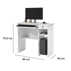 Se você procurava uma escrivaninha para complementar seu ambiente de trabalho, encontrou a mesa para computador Viena - EJ móveis Linda e versátil, possui nichos, prateleira, gaveta e tampo recolhível para teclado que garantes espaço para tudo que você precisar acomodar. Dimensões do produto montado: Altura: 76,5 cmLargura: 90 cmProfundidade: 40 cm Obervações:- Bordas ergonômicas;- Tampo para teclado recolhível;- 01 gaveta auxiliar;- Pés em plástico anti-umidade; - Produzido em MDP e MDF de 12 mm. - Pintura em UV. Atenção! Confira as dimensões deste produto e certifique-se de que passará normalmente por supostos elevadores, portas, escadas e/ou corredores de sua moradia; As imagens são ilustrativas, eletrodomésticos e demais objetos que compõem o cenário, não fazem parte do anúncio; Sobre a tonalidade das cores, poderá ocorrer alterações conforme a configuração do seu monitor. Orientamos que a montagem e instalações do produto seja realizado por um técnico de sua confiança, após a sua entrega.