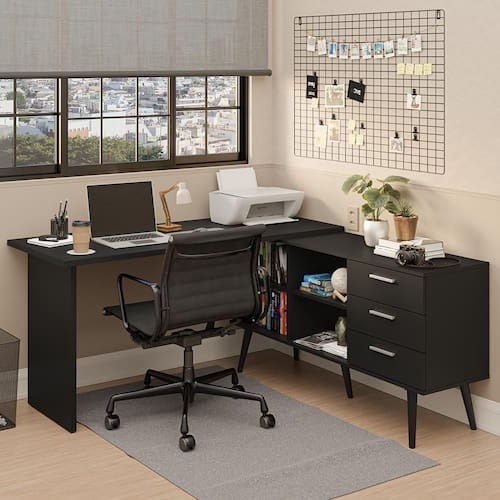 A Escrivaninha Lisboa da Madesa é perfeita para quem busca um ambiente mais organizado e funcional. Com formato em L, ela oferece quatro possibilidades de montagem, permitindo adaptar o layout ao seu espaço e à sua rotina.
