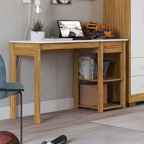 Escrivaninha Mesa de Estudo 1 Gaveta em MDF Popy Móveis Peroba - Bege Médio