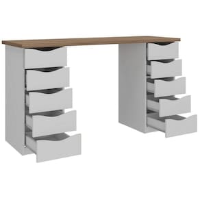 Escrivaninha Mesa Home Office 10 Gavetas Due II Nogal/Branco - Escrivaninha Office com 10 Gavetas Due II