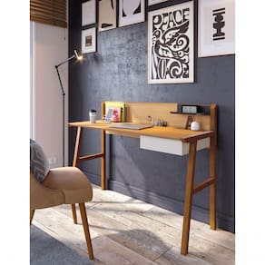 Escrivaninha Mesa Para Computador Job Off White Com Nature - Imcal Móveis A Escrivaninha Mesa para Computador Job - Imcal Móveis, faz-se ideal para o seu home office ou área de estudos. Com um amplo tamplo deixará sua rotina mais fluída, além de diferenciais como suporte em aço para apoio, porta objetos com divisórias e passa fio. Garantindo uma organização em sua mesa, também conta com uma gaveta. Além do design exclusido e super moderno, proporcionando estilo e autênticidade ao seu ões do Produto montado:Altura: 95,2 cmLargura: 127 cmProfundidade: 47,2 cmObservações:- Gavetas com corrediças telescópicas;- Suporte superior em Aço;- Porta objetos;- Pés em madeira maciça;- Pintura ultravioleta com acabamento brilho na cor off white.- Pintura ultravioleta com acabamento amadeirado na cor nature. Marca: Não Informado