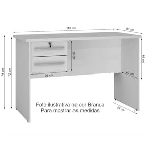Estrutura: MDP de 15 mmAcabamento: Tintura Texturizada U.V.Tampo: Formato Retangular de 25 mm maciçoGavetas: Sim, 2 gavetas, com corrediças telescópica e chave Puxadores: Em EPS metalizadoDiferenciais: Lado do Gaveteiro Opcional ; Ampla área de trabalho