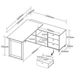 - Estrutura em MDP 15mm com fita de borda ABS com 0,45mm de espessura; - Laterais da mesa em MDP 25mm com fita de borda ABS 0,45mm de espessura; - Puxadores em metal; - Três gavetas com corrediças metálicas, fundo em MDF 3mm e frente em MDP 15mm com fita de borda ABS com 0,45mm de espessura; - 4 posições de montagem da mesa que podem ser escolhidos na hora da montagem; - Conjunto de gavetas podem ser montadas em qualquer nicho; - Traseira estrutural com acabamento dos dois lados em MDP 15mm com fita de borda ABS com 0,45mm de espessura; - 5 sapatas plásticas no balcão e 2 sapatas com regulagem de altura na lateral da mesa; - Fixação com tambor, minifix e parafuso. - Capacidade de Carga: - 15kg distribuídos no tampo e base do balcão; 5kg distribuídos nas prateleiras e gavetas. - 10kg distribuídos na mesa.