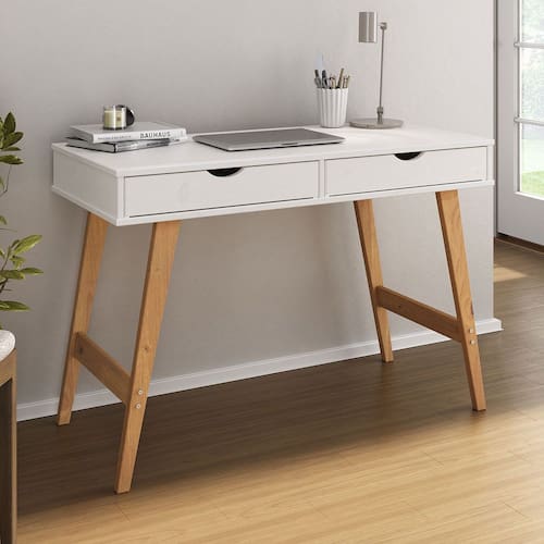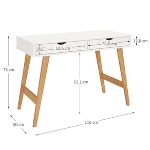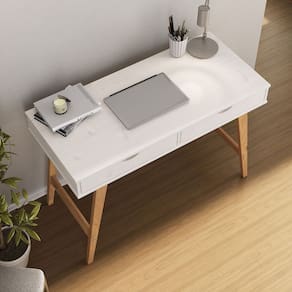 A Escrivaninha Para Quarto Minimalista Nórdica Milo combina design escandinavo e funcionalidade em uma peça compacta e elegante. A Mesa de Trabalho Funcional Home Office Milo possui tampo branco suave e pés em madeira maciça natural, é ideal para home office, estudo ou decoração. Suas duas gavetas espaçosas organizam itens essenciais, enquanto o tamanho otimizado (110x50x75 cm) se adapta a pequenos espaços.Os pés inclinados da Escrivaninha Para Escritório Milo são, inspirados no design escandinavo. Sua angulação suave traz leveza ao visual do móvel, enquanto o formato de cavalete refinado proporciona maior estabilidade e resistência. A Mesa de Escritório Design Escandinavo Moderno Versátil Milo Freijó, possui acabamento minimalista, é perfeita para criar ambientes leves e modernos.