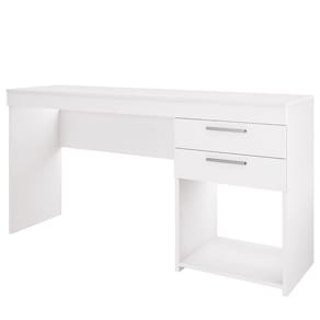 Modelo:Mesa Office Cor: Branco Material: BP Pintura / Revestimento: Acetinado Corrediças: Telescópicas Quantidade de gavetas: 2 Tipo de Porta: NÃO POSSUI Portas: 0, NÃO POSSUI Necessita Montagem: sim Sistema de montagem: Parafusos