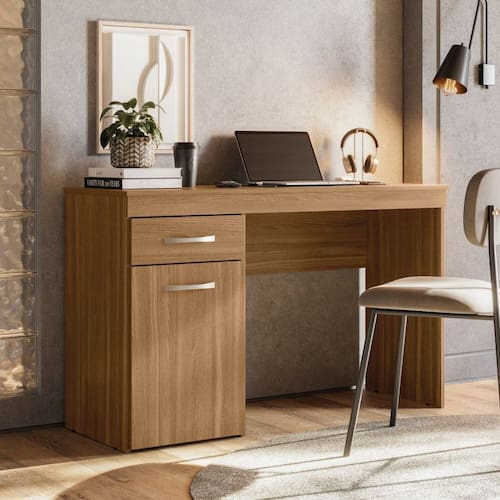 A Escrivaninha Vitória tem estrutura produzida em MDP e revestimento em pintura UV. Ampla bancada para acomodar o computador e fazer anotações. Gavetas com corrediças metálicas, para mais estabilidade ao abrir e fechar. Portas com dobradiças metálicas, para mais estabilidade ao abrir e fechar. Puxadores em plástico ABS que são mais fáceis de higienizar. Mini sapatas que evitam o atrito do móvel com o piso. Produto Montado: Sim Acabamento do Tampo: Pintura UV Acompanha Manual de Instalação: Sim Ambiente Principal: Escritório codigo_ean: 7900288263759 Complexidade da Montagem: Média: pode ser montado por mais de uma pessoa e/ou necessite de maior conhecimento para montagem Cor: Amendola Touch Cor da Base: Marrom Cor do Produto: Amêndola Touch Cor do Tampo: Marrom Cor Flex: Não Cor Interna: Amêndola Dobrável: Não Escala de Brilho: Fosco Espessura do Tampo: 15 mm Formato: Retangular Gaveta com Chave: Não Itens Inclusos: 1 Escrivaninha, Kit Ferragem e Manual de Montagem Lado de Montagem: Esquerdo Linha ou Coleção: Vitória Manual de Especificação Técnica: https://product-hub-prd.madeiramadeira.com.br/546829017/documents/42c142d0-1b35-44bc-b5c2-c024263b6844327275130281760447529535.pdf Manual de Montagem e Instalação: https://product-hub-prd.madeiramadeira.com.br/546829017/documents/dda87c2e-26e3-4503-9511-d68b0960663d327275030281760447527589.pdf Marca: Demóbile Material da Estrutura: MDP Material do Puxador da Gaveta: ABS Material do Puxador da Porta: ABS Material do Tampo: MDP Material Principal: MDP Modelo Infantil: Não Montagem Flex: Não Necessita Montagem: Sim Origem do Produto: Nacional Pés com Regulagem de Altura: Não Pés Reguláveis: Não Peso: 22,4 kg Peso Máximo por Gaveta: 3 kg Posição da Gaveta: Frontal Possui Acabamento na Parte de Trás: Não Possui Borda Arredondada: Não Possui Caixa de Tomada: Não Possui Espelhos: Não Possui Estante: Não Possui Gaveta para Pasta Suspensa: Não Possui Gaveteiro: Não Possui Passa Cabos: Não Possui Porta Objetos: Não Possui Portas: Sim Possui Prateleiras: Não Possui suporte para CPU: Não Possui Suporte para Teclado: Não Possui Vidro: Não Quantidade de Gavetas: 01 Gaveta Recomendações de Uso, Manutenção e Limpeza: Higienizar com flanela limpa e seca. Sapatas Niveladoras: Não Sistema de Montagem: Parafusos, cavilhas e pregos. Suporta Até (kg): 12 kg Suporta Braço Articulado: Não Tipo de Corrediça da Gaveta: Metálica Simples Tipo de Dobradiça/Corrediça da Porta: Metálica