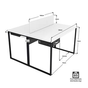 Peso suportado (distribuídos por tampo): 85kg (tampo).