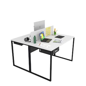 Invista no bem-estar da sua equipe com a estação de trabalho estilo industrial de 2 lugares com gavetas da Linha de Estações de Trabalho da Netmobil.
