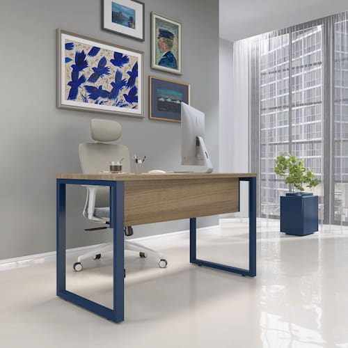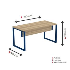 Escrivaninha para Escritório 73,5cm X 150cm Noce Naturalle/Azul Delrei - Marrom