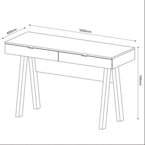 Características da Escrivaninha para Escritório Cavalete 2 Gavetas: - Estrutura em MDP; - Acabamento em BP; - 2 gavetas; - Puxadores em alumínio escovado; - Escrivaninha tipo cavalete; - Suporta até 20kg no tampo e 3kg cada gaveta; - Não acompanha objetos decorativos; - Para uma limpeza mais efetiva, utilizar apenas pano macio umedecido e sabão neutro. Não utilizar produtos abrasivos; - Montagem por conta do comprador;