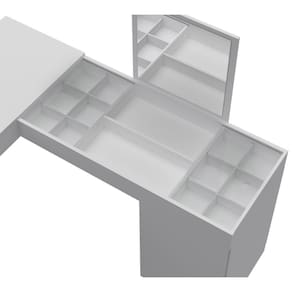 A penteadeira Star trata-se de um produto com destaques versáteis, que proporciona um estilo ideal para se preparar para as ocasiões mais especiais, unindo design moderno e minimalista à utilidade do dia a dia. Estrutura 100% em MDP, contando com pintura em acabamento UV e verniz texturizado. Composta por vidros deslizantes, 01 painel fixo com espelho, 01 porta com dobradiça metálica, prateleira interna suportando até 5 Kg, e nicho organizador embutido. Este móvel chegará em sua casa separado em 01 volume.