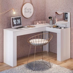 Escrivaninha com Camarim Jade, projetada para atender todas as suas necessidades, essa escrivaninha conta com um tampo basculante e nichos organizadores para melhor organização de seus objetos. Perfeita para você que está em busca do diferente, funcional, esse produto com certeza deixará seu ambiente muito elegante. Possui Suporte para Teclado: Não Possui Passa Cabos: Não Acabamento: Finish Foil Altura: 109,5 cm Ambiente Principal: Quarto calculo: unidade Complexidade da Montagem: Alta: deve ser montado por um montador especializado Cr: Branco Cr do Produto: Branco Cr Flex: Não Cr Interna: Branco Escala de Brilho: Fosco Estilo: Moderno Formato: Em L Itens Inclusos: 1 Escrivaninha, Kit Ferragens e Manual de Montagem Largura Frontal: 135,5 cm Largura Lateral: 82 cm Linha ou Coleção: Jade Manual de Montagem e Instalação: https://cdn2.madeiramadeira.com.br/atributo/mobler/758913-3003029-esquema-de-montagem-jade-18-02-2020-traduzido.pdf Material Principal: MDP Montagem Flex: Não Necessita Montagem: Sim Origem do Produto: Nacional Peso: 22 kg Possui Gavetas: Não Possui Pés: Não Possui Porta Objetos: Sim Possui Portas: Não Possui Prateleiras: Não Possui Rodízio: Não Possui suporte para CPU: Não Profundidade: 36 cm Recomendações de Uso, Manutenção e Limpeza: Para conservar a aparência e a durabilidade do produto: - Utilizar pano macio e úmido; - Não usar solventes ou abrasivos. Sapatas Niveladoras: Não Sistema de Montagem: Parafusos e Cavilhas status-cadastro: Aprovado Suporta Até (kg): 30 kg Tamanho:
