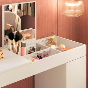 Escrivaninha Penteadeira Marih 121 cm, uma excelente opção para você que busca design funcional, moderno e fácil de incluir em qualquer ambiente. Estrutura em MDP de 12, 15 e 25 mm, pintura com acabamento em UV (Fosco). Composta por uma porta com dobradiças metálicas, prateleira interna, painel fixo com espelho quadrado, nicho divisor organizacional com vidro deslizante para objetos e maquiagens e acompanham sapatas plásticas. Suporta até 25kg. Perfeita para organizar suas maquiagens ou outros produtos proporcionando praticidade e conforto. Este móvel chegará na sua casa separado em 1 volume.