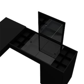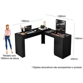 A Escrivaninha de canto com penteadeira Princesa tem como destaque seu design moderno e despojado. Além das funcionalidades de uma escrivaninha, possui nicho organizador para objetos e joias, com vidros de correr, contendo também um painel com espelho fixo. Pois praticidade é tudo, não é mesmo? Possui porta convencional com uma prateleira interna e dobradiças metálicas, pintura UV, acabamento fosco. Com a combinação perfeita de qualidade e durabilidade tudo isso para completar sua casa