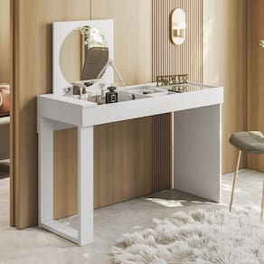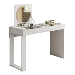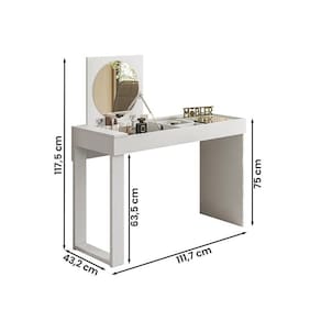 Material: MDP, com espelho Redondo 45x43,2x15 cm, Tampo de MDP basculante com pistão a gás, tampo de vidro 3 mm de correr;