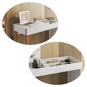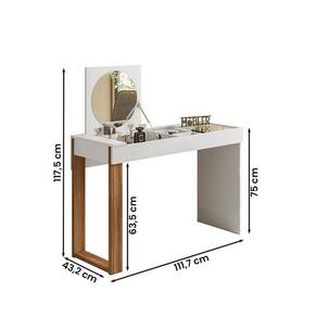 Material: MDP, com espelho Redondo 45x43,2x1,5 cm, Tampo de MDP basculante com pistão a gás, tampo de vidro 3 mm de correr;