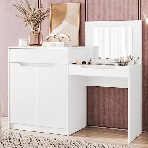 Material: MDP, espelho 45cm x 36cm, tampo basculante com divisória interna;