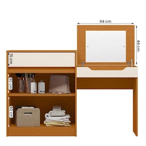 Material: MDP, espelho 45cm x 36cm, tampo basculante com divisória interna;