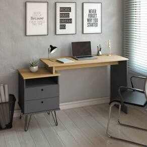 Escrivaninha Plus Home Office 2 Gavetas Olmo/Grafito -