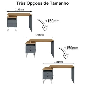 Maximize seu conforto e estilo com a Escrivaninha Plus, adaptável para se encaixar perfeitamente em qualquer espaço, graças às suas 3 opções de tamanho durante a montagem (1,135m; 1,285m; 1,435m). Este móvel eleva seu ambiente de trabalho ou estudo com uma estética industrial chique, combinando cores autênticas e pezinhos de metal retrô, conhecidos como hairpin legs, que garantem estabilidade e protegem seu piso com feltros adesivos. O acabamento em PVC de 2mm suaviza as bordas para um toque mais confortável, eliminando qualquer desconforto durante o uso. Além de seu design marcante, a escrivaninha oferece ampla funcionalidade com espaçosas gavetas, tornando-se o complemento ideal para quem busca beleza, qualidade e praticidade em um só produto.