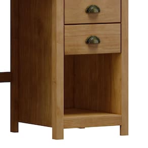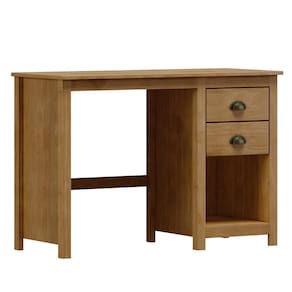 A Escrivaninha Topázio 2 Gavetas da Finestra Móveis une funcionalidade, durabilidade e um design sofisticado para compor ambientes de trabalho ou estudo com elegância. Fabricada com estrutura em madeira maciça de pinus de reflorestamento, possui acabamento acetinado em verniz PU e UV, garantindo resistência e um visual refinado. Conta com 2 gavetas espaçosas com corrediças telescópicas, suportando até 5 kg distribuídos, além de um nicho funcional para organizar itens de uso frequente. Os puxadores metálicos em ouro envelhecido adicionam um toque clássico ao design, enquanto os pés alongados em madeira maciça proporcionam charme e estabilidade. É a escolha perfeita para quem busca um móvel prático, bonito e de alta qualidade para o dia a dia.