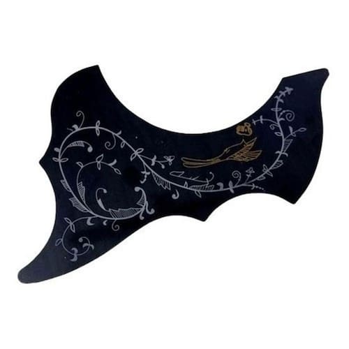 Com um design de boca redonda, esse escudo proporciona uma estética clássica e atemporal. O padrão floral preto confere um toque de sofisticação e originalidade. Ele se destaca no corpo do seu violão, proporcionando uma beleza distintiva.