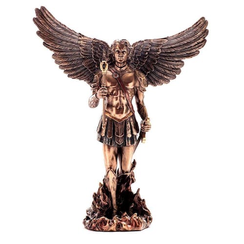 1 estatua arcanjo miguel 32 cm em resina veronese design collection cor bronze cod: wu77940