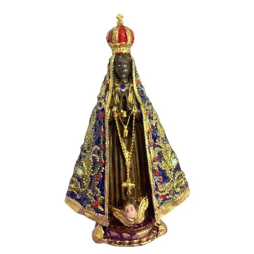 Escultura Aparecida Manto Bordado 15 cm Resina Esta escultura em resina trará boas energias e harmonia para sua casa, irá trazer bons fluídos. É ideal para colocar em seu altar ou completar a decoração de seu ambiente. Esculturas são itens especiais e decorativos, é um recurso que dá um toque a mais em qualquer ambiente, tem um valor espiritual e sentimental. Você pode enfeitar com um estilo próprio com muito bom gosto o seu altar ou ambiente.