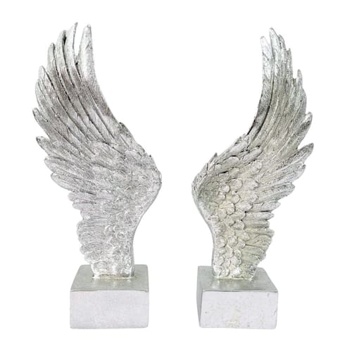 Escultura Asa De Anjo Decorativa Prata 25x11x6cm Kit 2pc Escultura de Asa de Anjo Prateada em Resina - Elegância e Espiritualidade para Sua Decoração Inigual Decor
