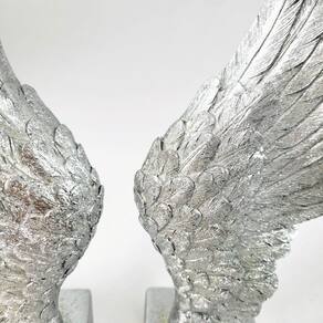 Não perca a oportunidade de adicionar uma peça decorativa sofisticada e inspiradora ao seu ambiente. Adquira sua escultura de asa de anjo prateada em resina hoje mesmo