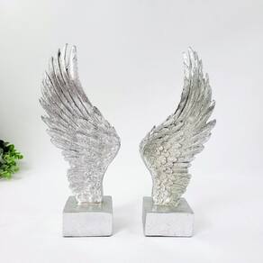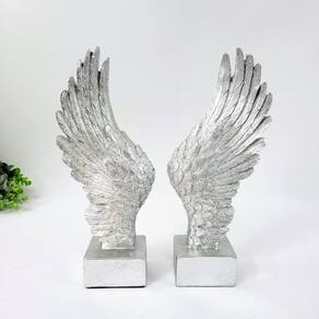 Adquira a Sua: Encontre a escultura de asa de anjo prateada em resina perfeita para sua casa ou escritório em nosso site. Transforme seu espaço com a elegância e o estilo único da Inigual Decor.
