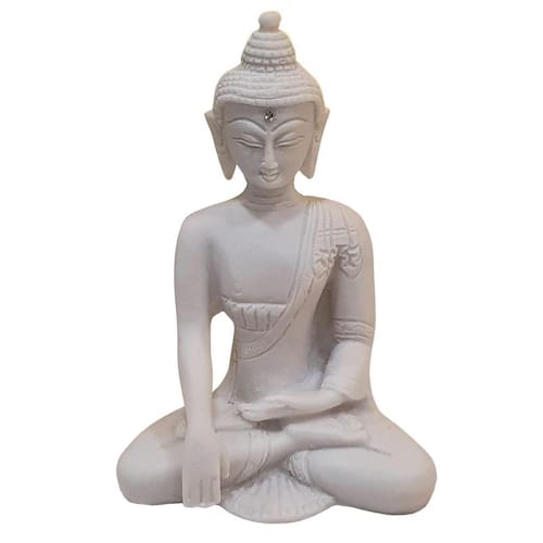 Escultura Buda Sidarta de Pó de Mármore Branco 15cm Escultura Buda Sidarta de Pó de Mármore Branco 15cm