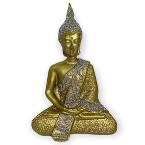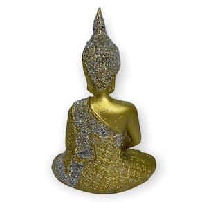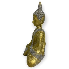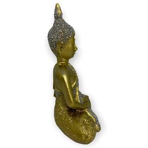 Escultura Buda Tibetano meditando 12 cm prata e dourado em resina