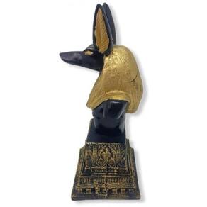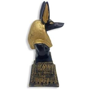 Escultura Busto Anúbis preto com dourado 15,5 cm em resina