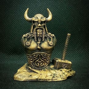 Material: resina sintética Tamanho do produto: 13* 8,5* 15 cm Peso do produto: 235Godin the All-Father Design — Uma impressionante escultura de busto de Odin, o deus nórdico da sabedoria, guerra e morte, segurando seu poderoso martelo Mjolnir, simbolizando força e conhecimento. Artesanato em resina intrincada — Feita de resina de alta qualidade com detalhes intrincados, esta peça apresenta elementos finamente pintados para aprimorar a textura e o realismo da aparência de Odin. Tamanho perfeito para exibição — Com 5,9 polegadas de altura, esta estatueta é ideal para qualquer prateleira, mesa ou área de exibição, trazendo o poder e o mistério da mitologia nórdica para sua casa. Ornamento simbólico do Deus Viking — Representando o papel atemporal de Odin na mitologia nórdica, esta escultura é perfeita para entusiastas da cultura viking e dos deuses nórdicos. Decoração versátil para casa ou escritório — Uma peça artística ousada, adequada para decoração com tema viking, fãs da mitologia nórdica ou como item colecionável exclusivo para qualquer espaço.