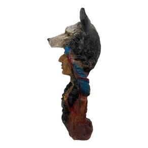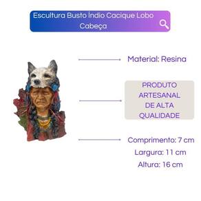 Escultura Busto Índio Cacique Lobo Cabeça 16 Cm em Resina Escultura Busto Índio Cacique Lobo Cabeça 16 Cm em Resina