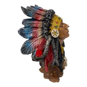 Escultura Busto Índio Guerreiro Cocar Xamã 26 cm em Resina Escultura Busto Índio Guerreiro Cocar Xamã 26 cm em Resina