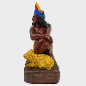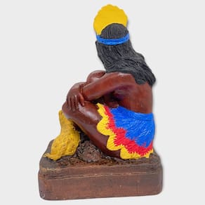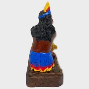 Escultura Cabocla Jurema penas coloridas 16 cm em resina