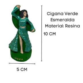 Escultura Cigana em Resina 11 cm Umbanda Candomblé Cor: Verde Esmeralda Escultura Cigana em Resina 11 cm Umbanda Candomblé