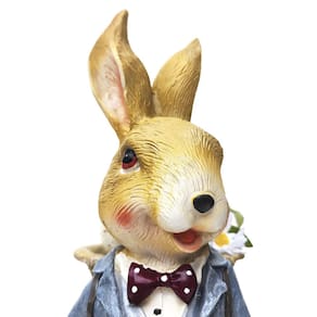 Este encantador coelho decorativo em pé, com 37cm de altura, é uma peça meticulosamente esculpida em resina, que adiciona um toque de elegância e afeto a qualquer ambiente. Vestido com um paletó e uma gravata borboleta, este coelho emana charme e sofisticação, enquanto segura delicadamente a mão de seu filhinho. O filhote, com uma expressão adorável, está olhando para o pai com ternura, pedindo colo. Esta cena comovente retrata o vínculo amoroso entre pai e filho, capturando um momento de carinho e proteção. Com detalhes intrincados e acabamento impecável, esta peça é uma adição encantadora à decoração da Páscoa ou a qualquer ambiente que busque uma atmosfera acolhedora e familiar.