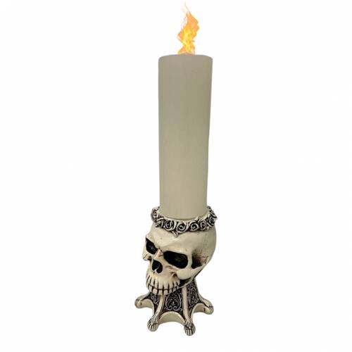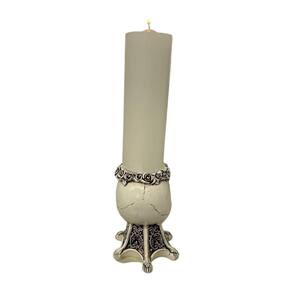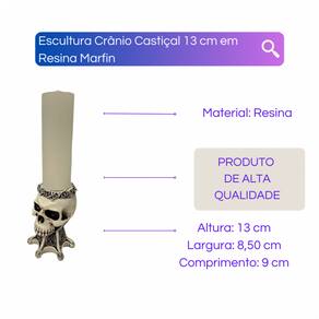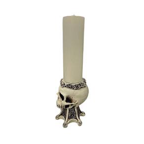 Escultura Crânio Castiçal 13 cm em Resina Marfim