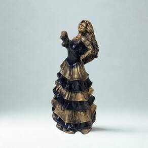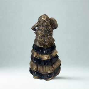 Escultura da Dama da Noite 10 cm, com vestido preto e dourado que exala charme, poder e mistério. Uma representação intensa e refinada da Pomba Gira, senhora dos caminhos, da sensualidade e da liberdade. Feita em resina com acabamento artesanal, é ideal para quem deseja uma peça compacta, mas de forte presença espiritual e estética. Perfeita para altares, ambientes de proteção ou como item simbólico de empoderamento.