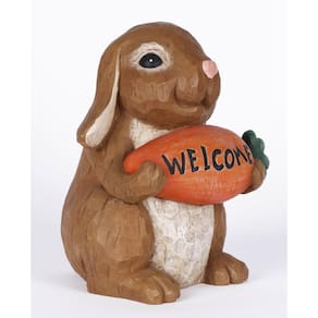 Hi-Line Gift 75637-A Escultura de Conejo Sosteniendo Zanahoria para Bienvenida - Hermosamente pintada con detalles realistas - Composición: poliresina - Para uso interior y exterior - Número de modelo: 75637-A
