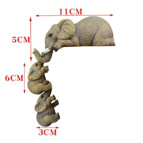 Material: resina sintética Tamanho: 12 cm × 7 cm × 14 cm Peso: 180 g ['Charming Elephant Family Design — Apresenta uma mãe elefante segurando três bebês elefantes brincalhões pela tromba, simbolizando unidade e afeto, ideal para decoração de jardins e exibição doméstica. ', 'Figura de resina durável — Feita de resina sintética resistente, esta escultura oferece resistência às intempéries, adequada para uso externo em bordas de pátios, varandas, cercas ou prateleiras internas. ', 'Ornamentos de estilo suspenso — Projetados para pendurar ou se inclinar sobre saliências, vasos ou trilhos de escada, criando uma cena emocionante em pátios, molduras de janelas ou prateleiras de parede. ', 'Estátua artística detalhada — Texturas realistas e acabamento pintado à mão capturam o charme suave dos elefantes, aprimorando a decoração inspirada na natureza ou com tema de safári. ', 'Acento compacto e versátil — Medindo 12 × 7 × 14 cm, esta estátua se encaixa perfeitamente em jardins, áreas de estar, entradas ou cantos decorativos sem ocupar muito espaço.']