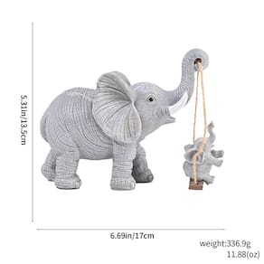 Material: resina Tamanho: consulte a foto Peso: 421 g ['Design emocionante para mãe e bebê: apresenta um elefante cinza segurando um elefante bebê em miniatura em um balanço, simbolizando cuidado e conexão, perfeito para criar uma cena alegre no jardim. ', 'Artesanato detalhado em resina: feita de resina durável com textura esculpida, esta escultura resiste a elementos externos, mantendo um charme realista e padrões intrincados. ', 'Ornamentos de jardim versáteis: ideais para ambientes de pátio, cantos de gramado, vitrines de varanda ou prateleiras internas, aprimorando os espaços com uma figura divertida e elegante da vida selvagem. ', 'Estátua decorativa estável: com uma estrutura sólida e uma pose realista, esta estátua de elefante pode ficar segura em várias superfícies, tornando-a uma peça central de destaque entre os detalhes decorativos. ', 'Figura artística de animal: adequada para jardins de fadas, paisagismo temático ou decoração de interiores, trazendo personalidade e aconchego a qualquer ambiente por meio de um design expressivo.']