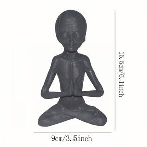 Material: resina sintética Tamanho: 9* 15,5 cm Peso: 186 g ['Design extraterrestre exclusivo — apresenta uma figura alienígena serena em pose de meditação, adicionando um toque humorístico e místico à decoração de jardins ou espaços internos. ', 'Escultura de inspiração zen — retrata calma e equilíbrio, ideal para criar uma atmosfera pacífica em pátios, recantos de ioga ou áreas de relaxamento. ', 'Figura de resina durável — Feita de resina resistente, esta estátua resiste às condições externas, perfeita para gramados, varandas ou prateleiras decorativas. ', 'Ornamentos cósmicos compactos — Medindo 9 × 15,5 cm, esta estátua alienígena se encaixa em jardins de fadas, vasos, mesas ou exibições temáticas sem ocupar muito espaço. ', 'Creative Décor Accent — aprimora ambientes temáticos de ficção científica, fantasia ou meditação, servindo como ponto de partida para conversas em arranjos de casa ou jardim']